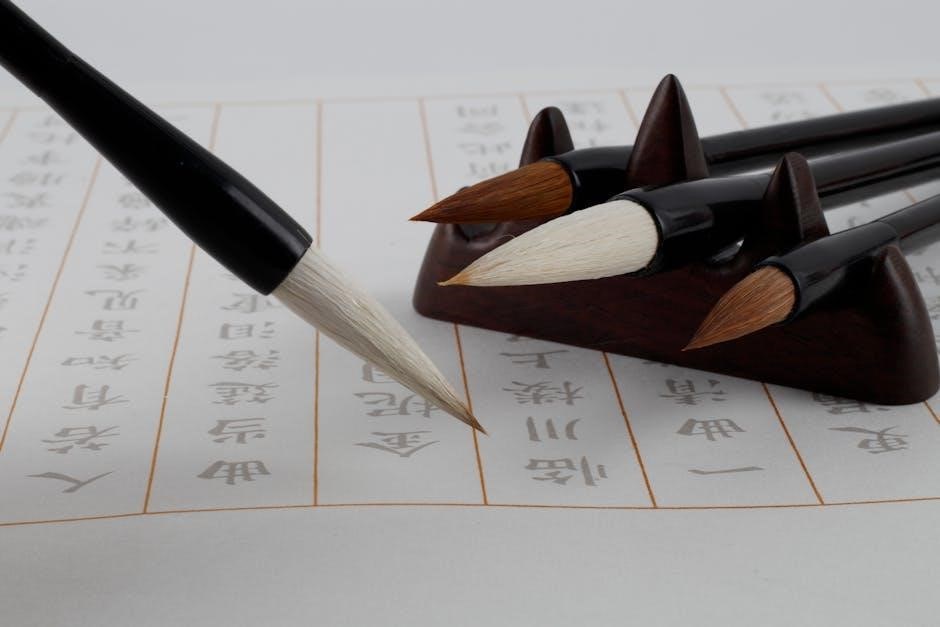 Chinese character practice sheets, often available as PDF downloads, are invaluable tools for learners. They provide structured grids – like the ‘rice’ field – for focused handwriting practice.